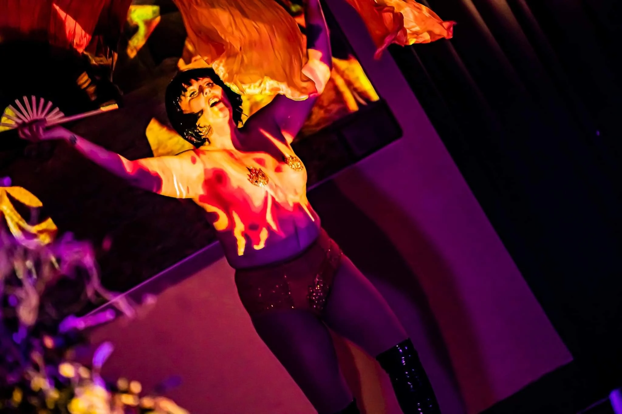 Think twice about seizing this Witch Queen’s power and burning her at the stake! This gorgeous display of silk fans and fiery projection is a feast for the eyes, with raw passion and fierce energy oozing from the stage and scorching your senses.